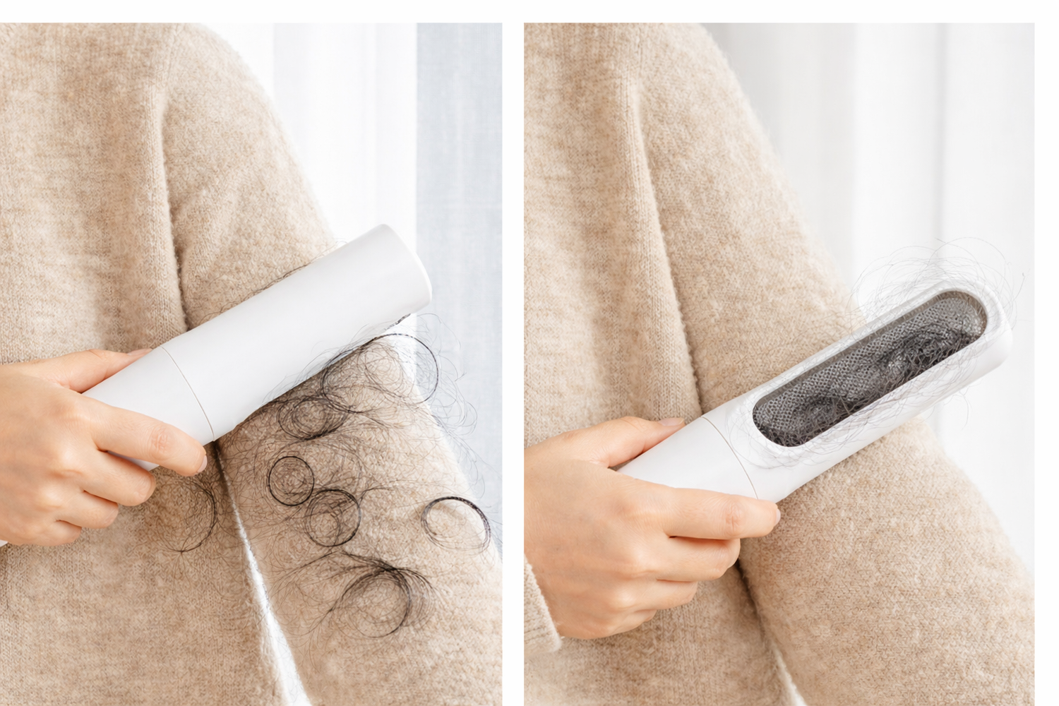 Unlike traditional lint rollers, FurSweep lifts embedded hair from deeper inside fabrics and doesn’t rely on sticky adhesive sheets that need replacing.